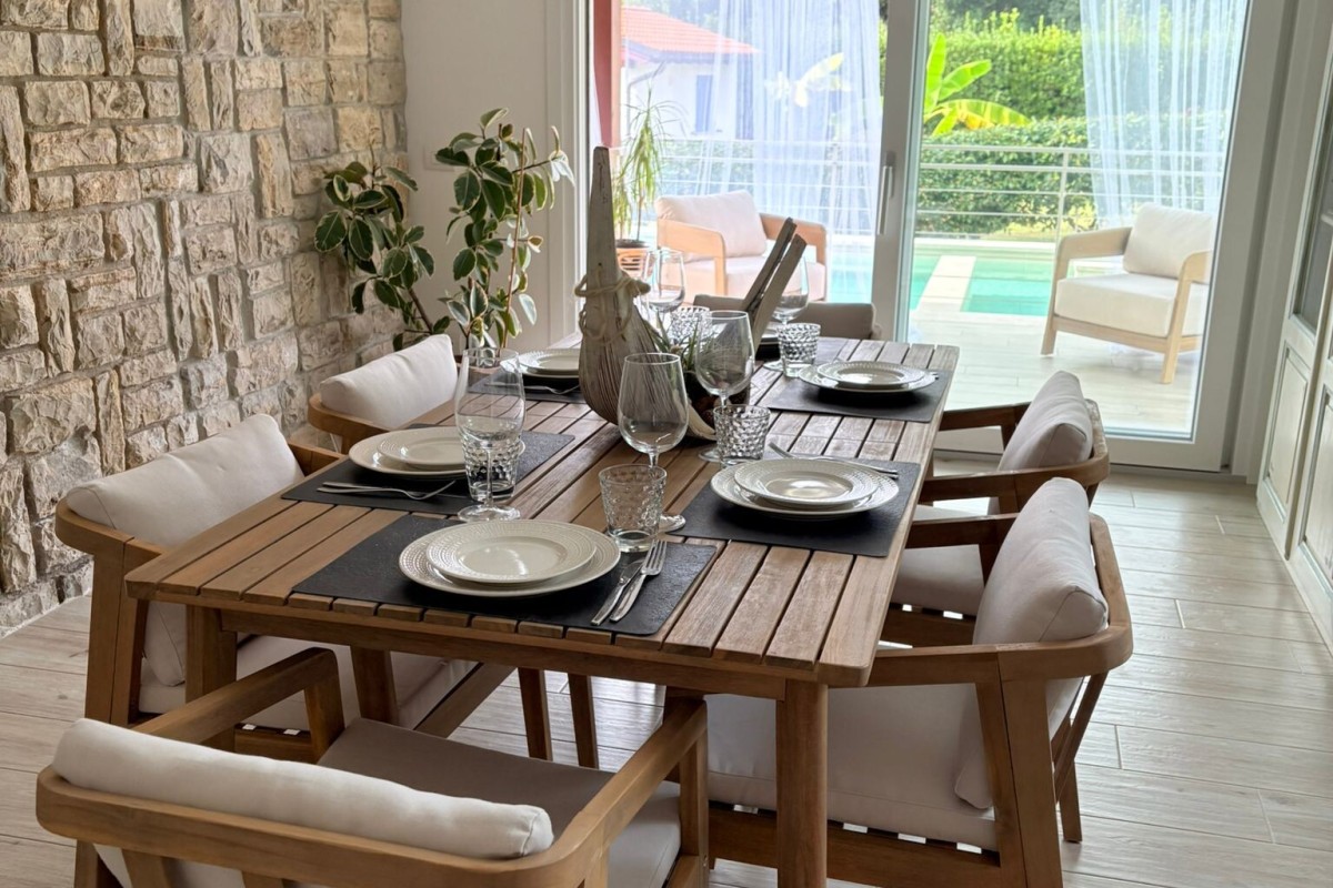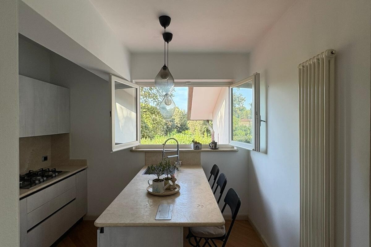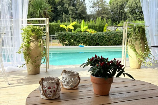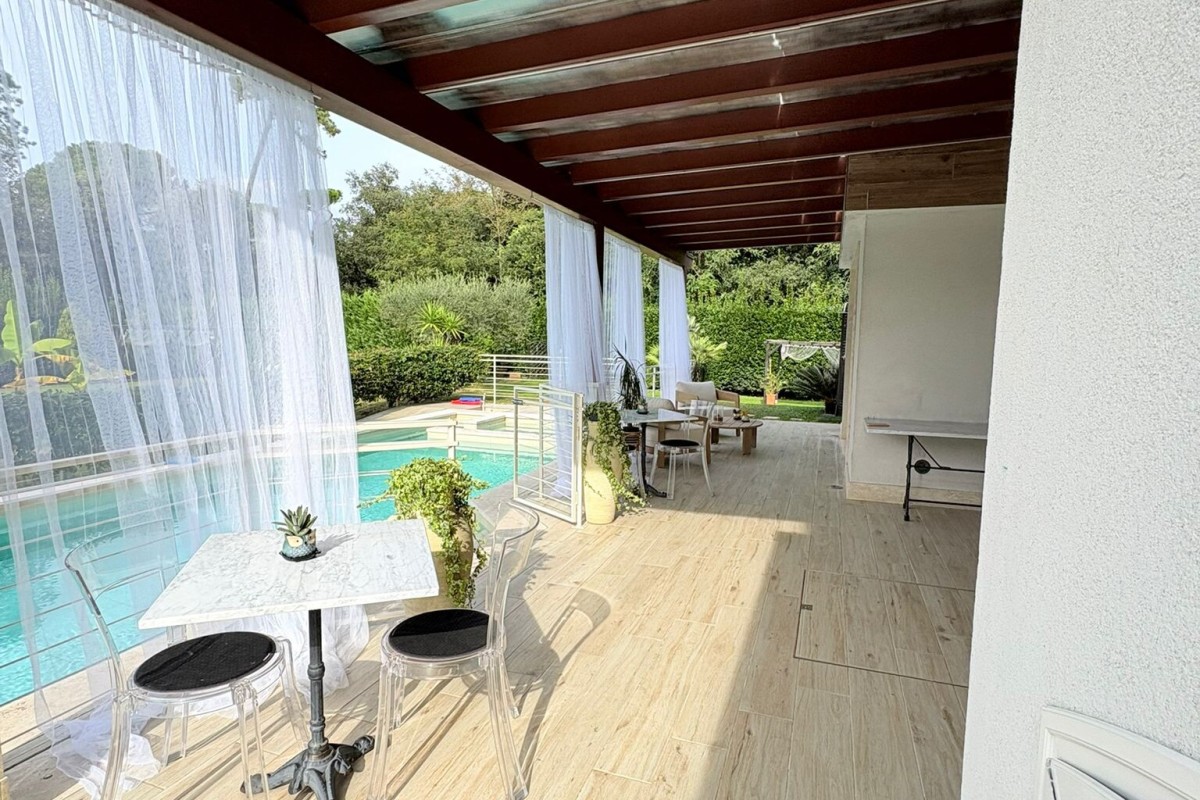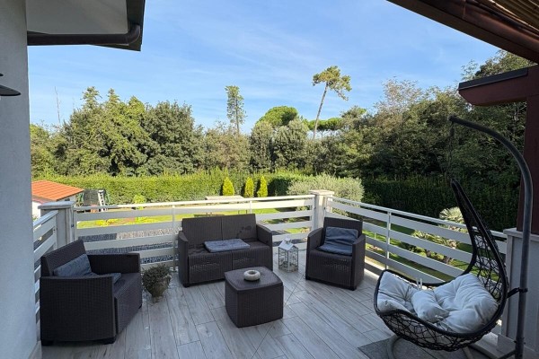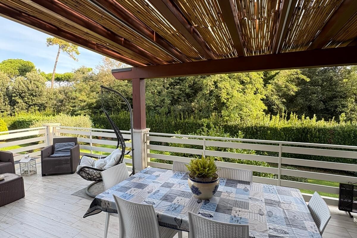 TRATTATIVE RISERVATE. Marina di Pietrasanta: 500 metri dal mare villa singola con piscina e 1200 metri di giardino disponibile, in affitto per la stagione estiva. Immobile di recente ristrutturazione dotato di tutti i comfort tra cui piscina, doppia cucina, aria condizionata in tutte le stanze, portico coperto abitabile per pranzi e cene all'aperto, grande giardino con gazebo, posti auto con possibilità di ricarica veicoli elettrici. L'immobile è composto a piano terra da soggiorno, sala da pranzo, cucina abitabile, 4 camere ognuna con il proprio bagno privato, zona lavanderia. Al primo piano troviamo una seconda cucina abitabile, zona giorno, terrazza con vista su giardino e due camere matrimoniali. La villa è dotata anche di un piano seminterrato con entrata indipendente nel quale è presente una camera con bagno. Completa la proprietà una dependance composta da soggiorno con angolo cottura, 1 camera matrimoniale, 1 cameretta, 2 bagni e lavanderia.