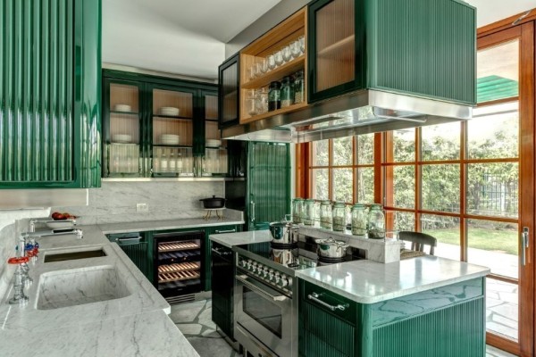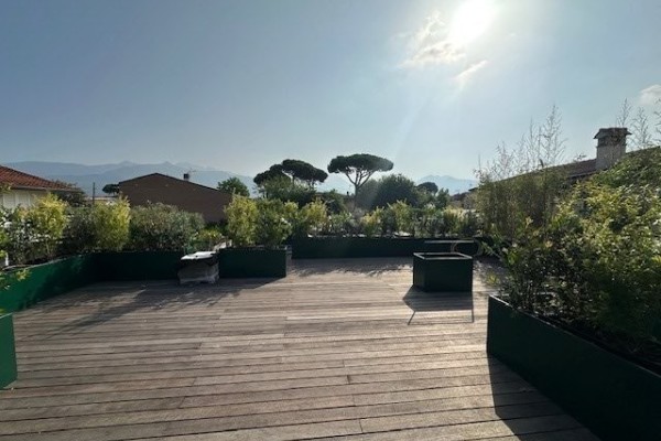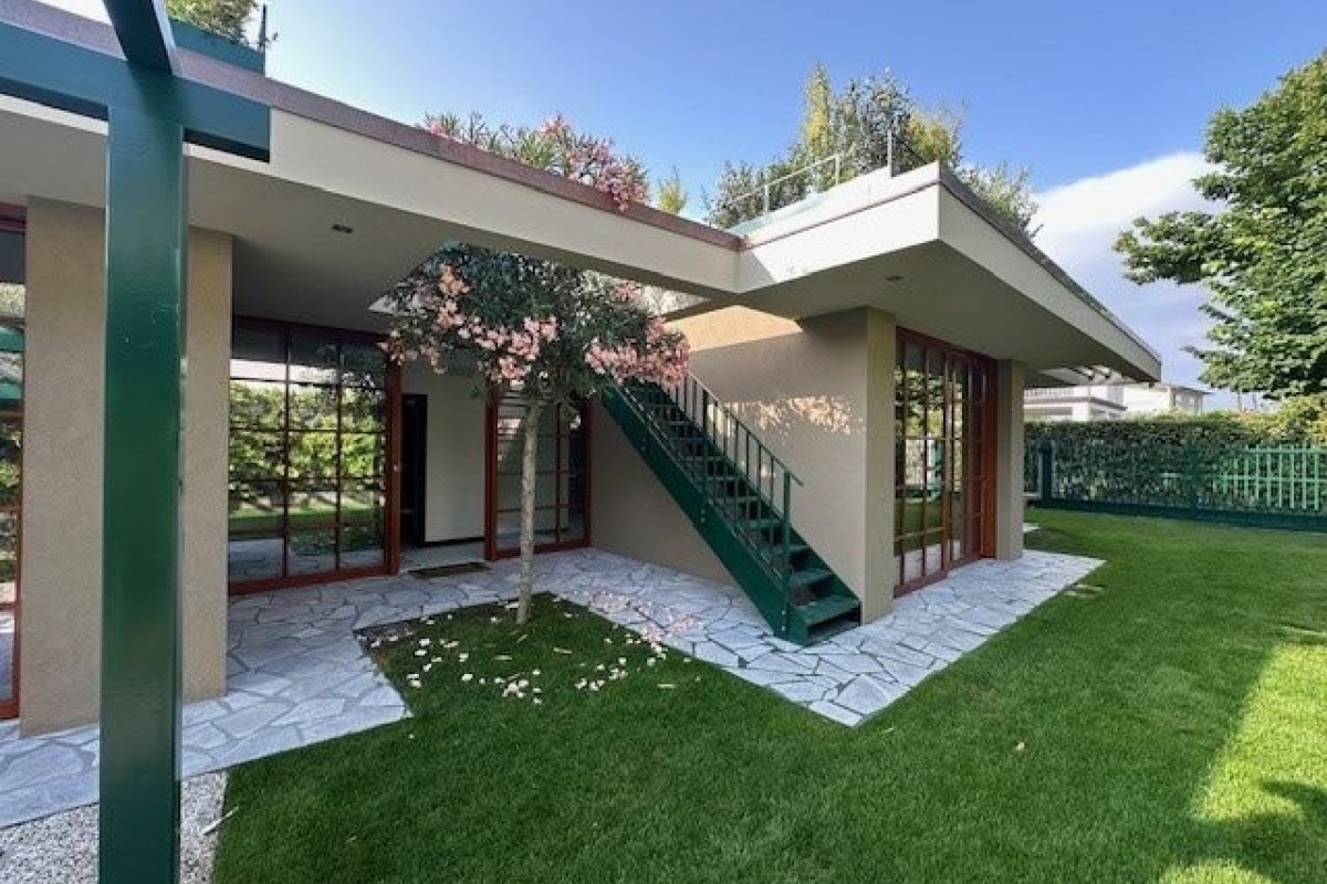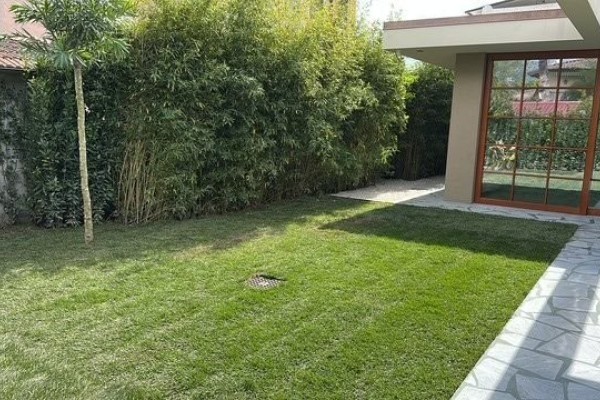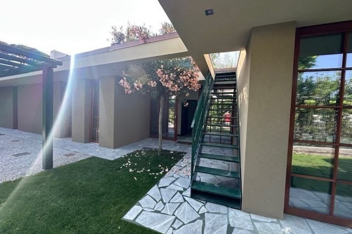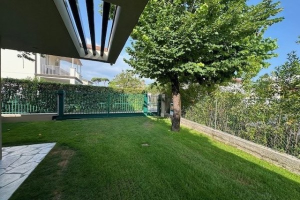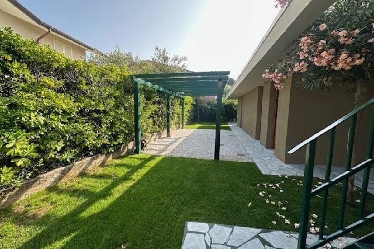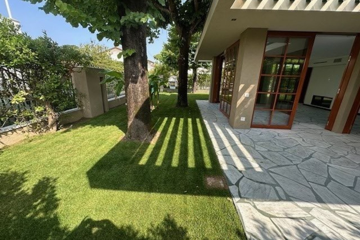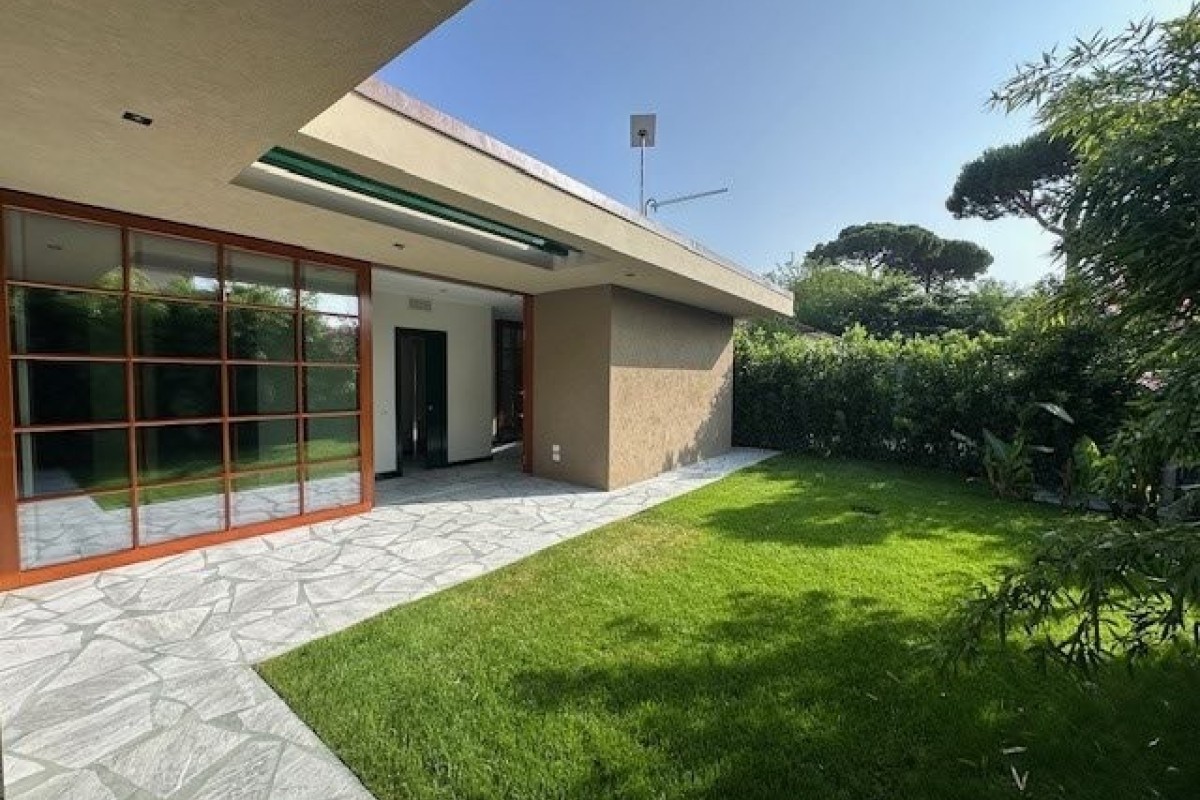 FORTE DEI MARMI: 750 metri dal mare, villa unifamiliare disposta a piano terra e composta da soggiorno-cottura, 3 camere, 4 bagni, giardino su 4 lati, impianto fotovoltaico. Superficie immobile mq.150, giardino mq.400. €.2.600.000,00