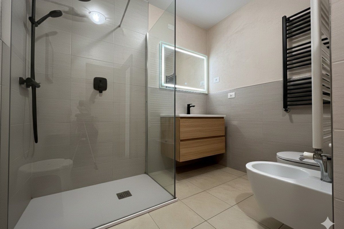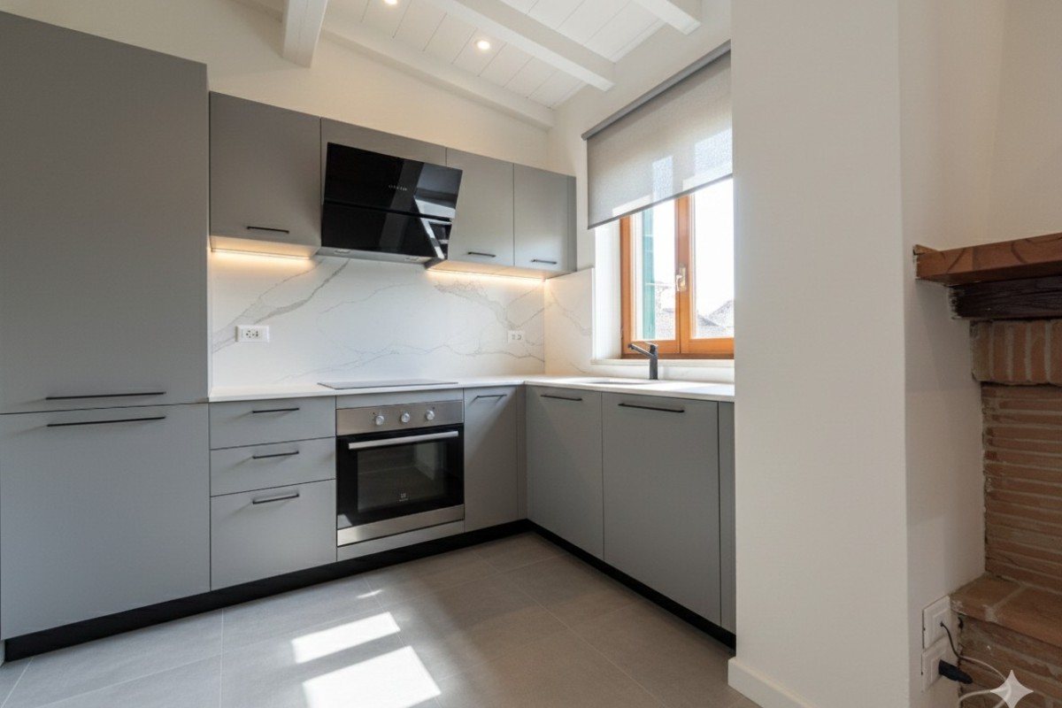N.B. Alcune immagini di questo immobile, pubblicate sul sito e sui portali immobiliari, hanno finalità puramente dimostrative. Esse rappresentano gli spazi esistenti con proposte di arredamento; i pavimenti rimangono invariati. Tali immagini servono esclusivamente a illustrare come l’immobile possa assumere un aspetto più gradevole e contemporaneo attraverso la semplice sostituzione degli arredi.