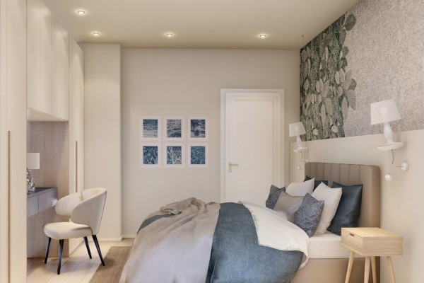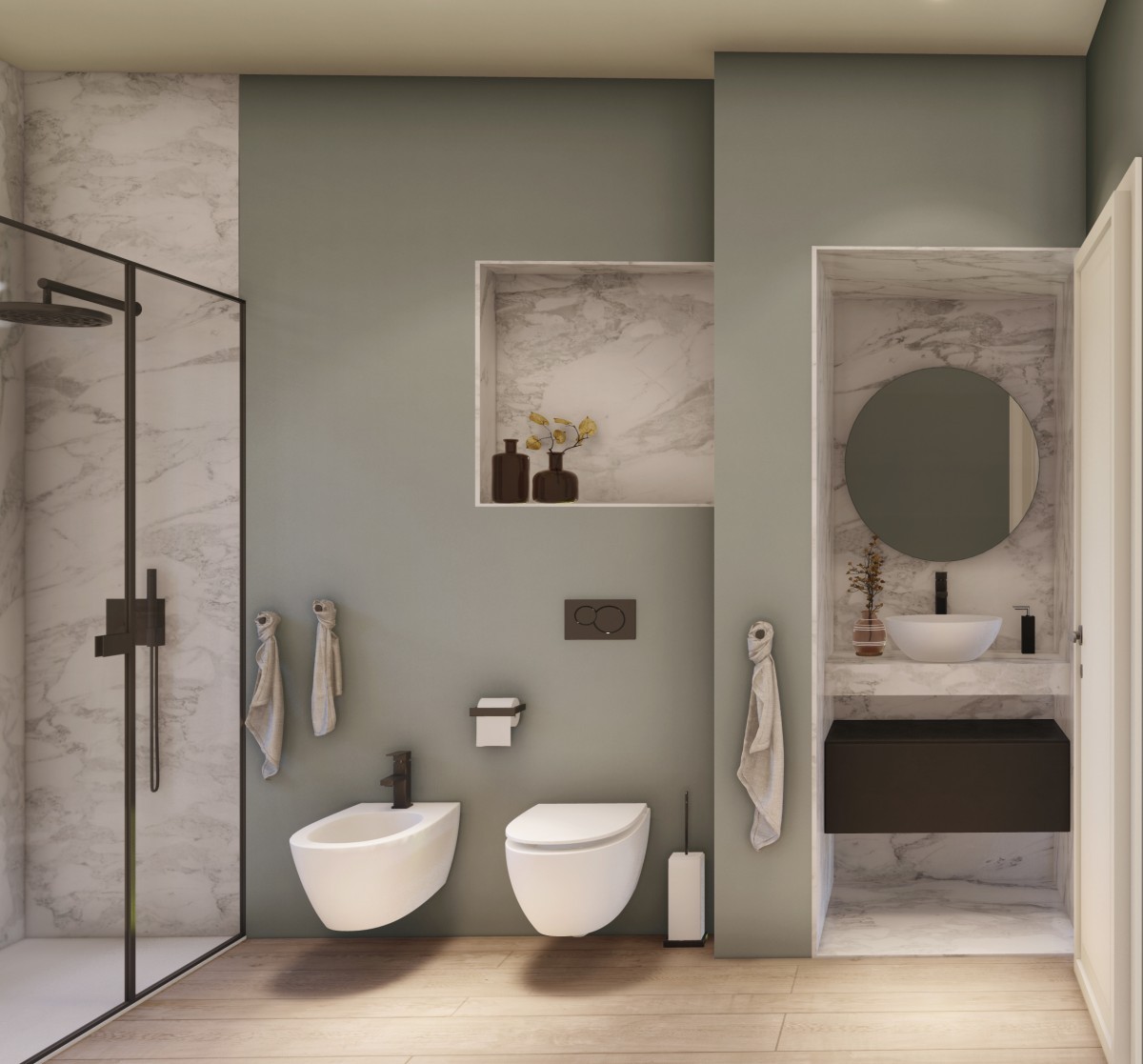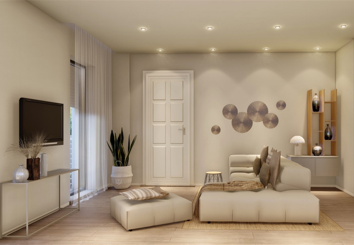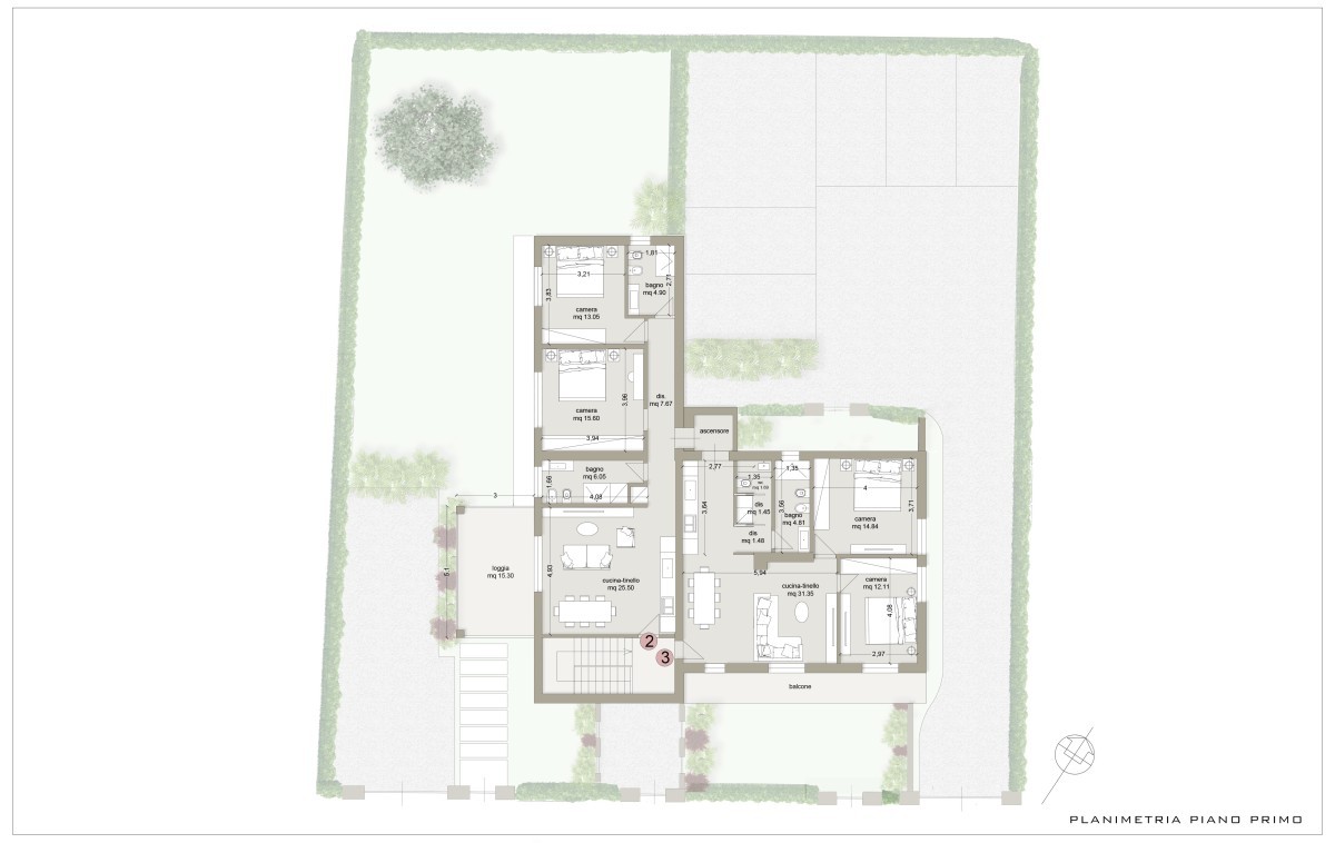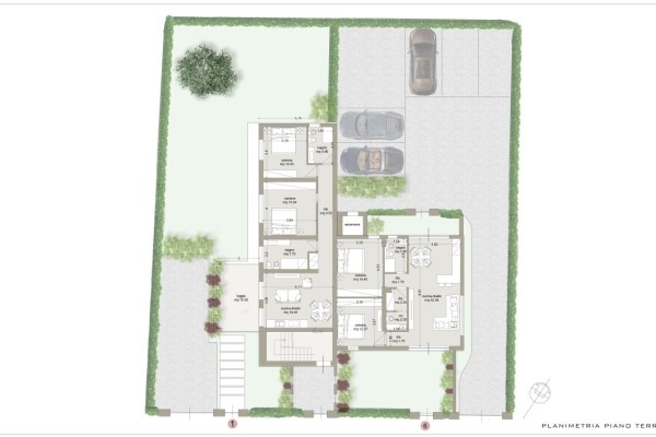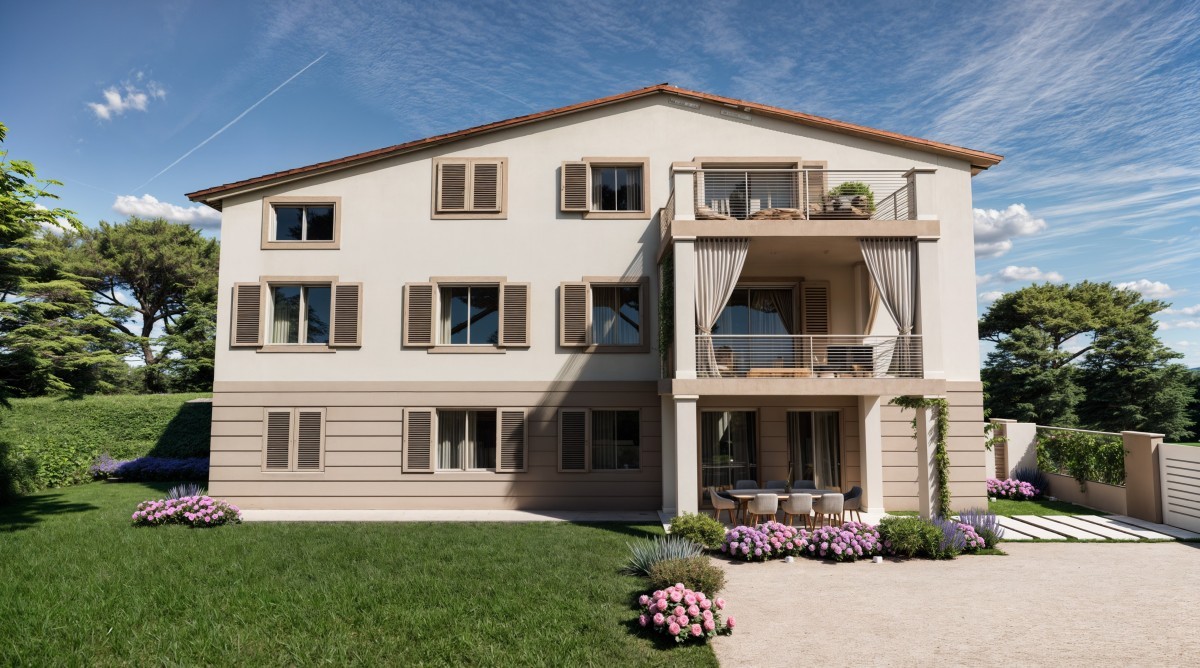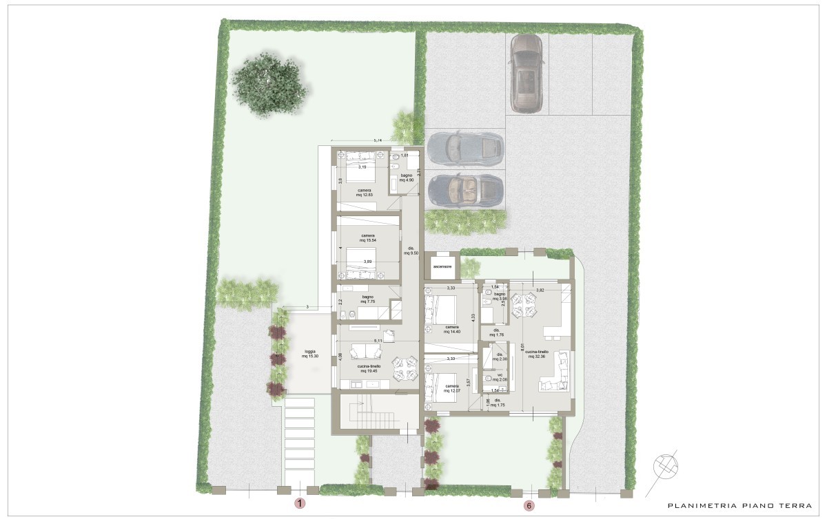 Il complesso è costituito da 6 unità immobiliari disposte su 3 livelli in totale. Al piano terra sono presenti appartamenti con giardini privati, mentre i piani superiori – serviti da ascensore – offrono ampie terrazze abitabili o balconi vivibili.