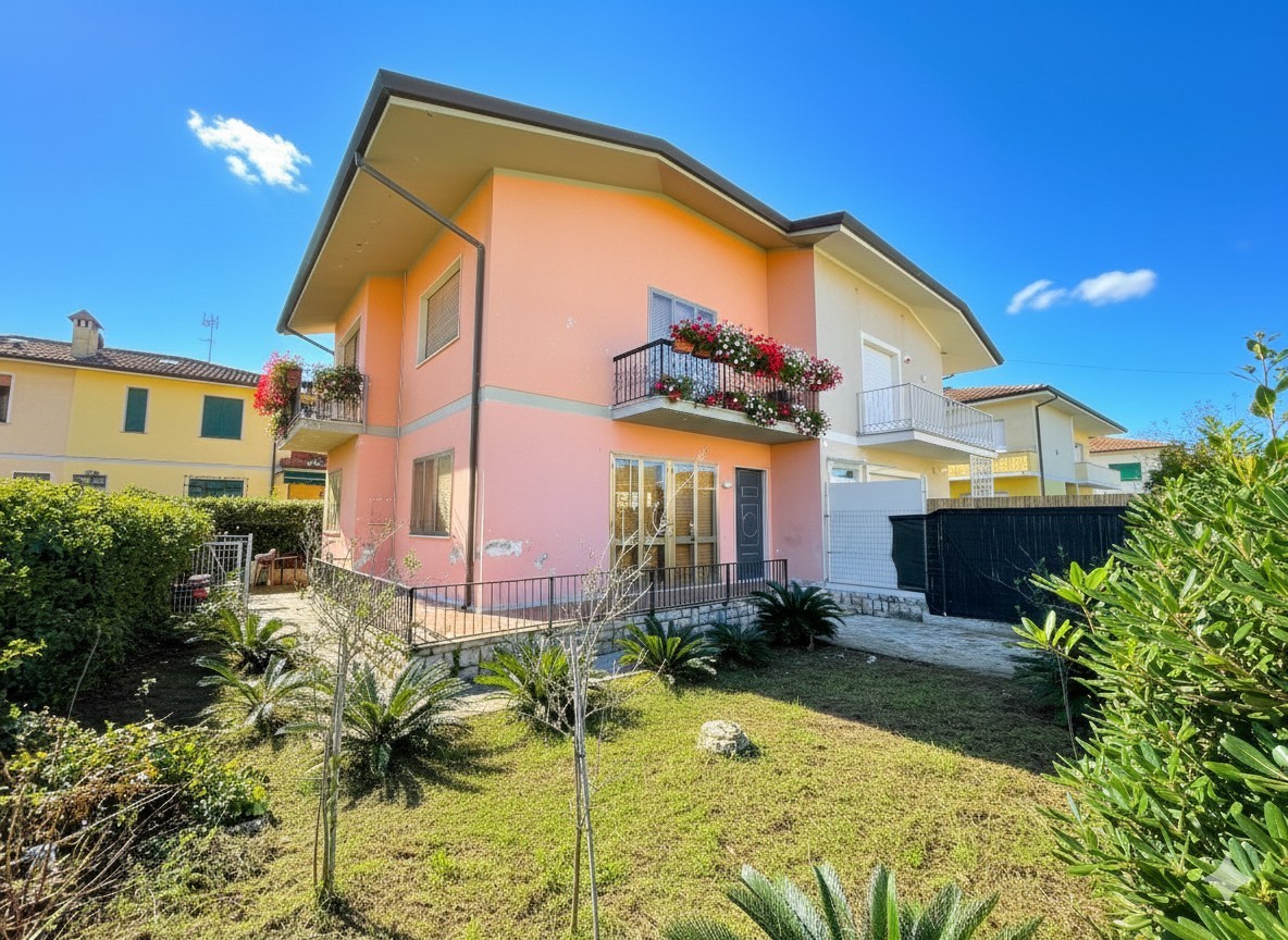 Marina di pietrasanta: 250 metri dal mare, villa in complesso bifamiliare composta da: soggiorno, cucina, bagno al piano terreno, 2 camere, 1 cameretta, 2 bagni al primo piano, camera con bagno al piano mansardato, ampio giardino su tre lati. Superficie immobile mq. 190 superficie giardino escluso immobile mq. 367 superficie commerciale mq. 200. E. 1. 100. 000,00 (prezzo al mq. E. 5. 500,00) rif. 50