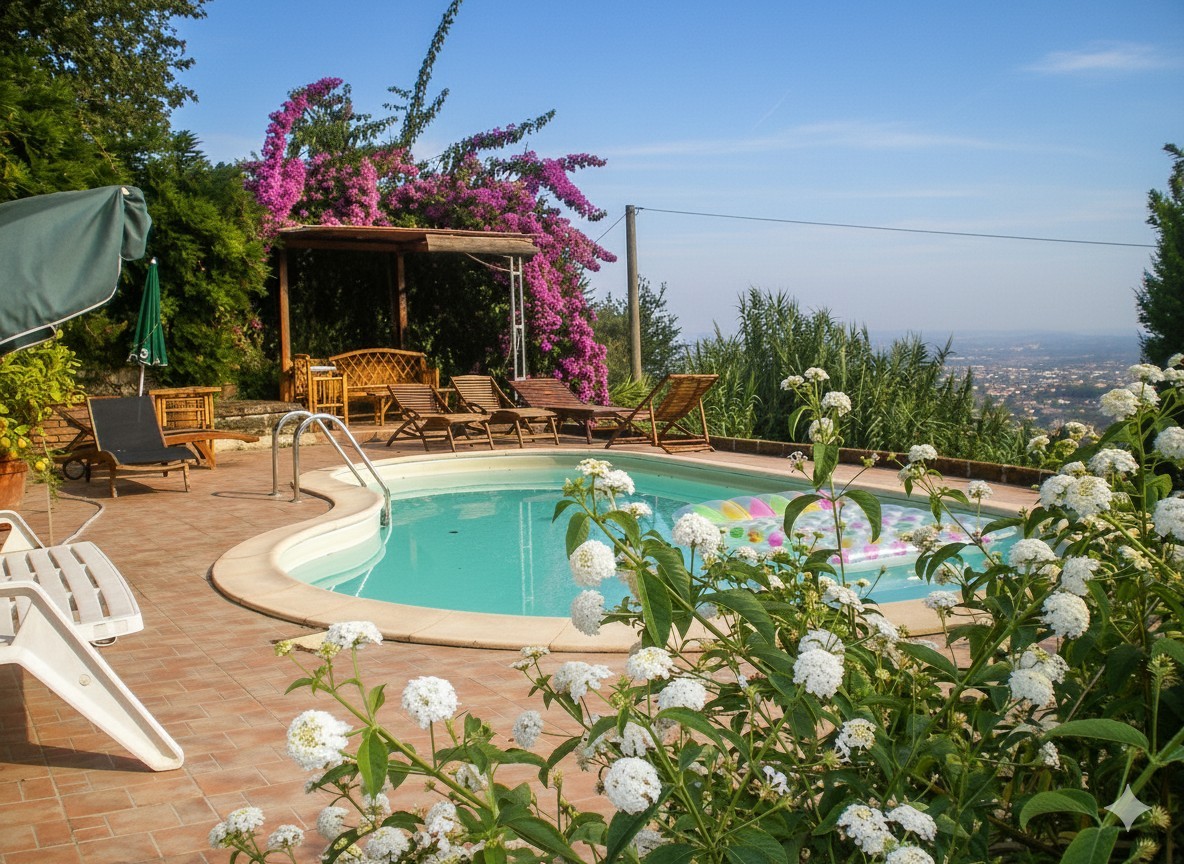 In una delle zone più richieste della prima collina di Pietrasanta, a Strettoia, proponiamo elegante villetta inserita in un complesso bifamiliare, immersa nel verde e caratterizzata da splendida vista mare e ottima esposizione. L’immobile si sviluppa su due livelli per una superficie complessiva di circa 165 mq. Al piano terra troviamo una comoda veranda, ideale per pranzi e momenti di relax all’aperto, un ampio e luminoso soggiorno, cucina abitabile e bagno di servizio. Il primo piano ospita la zona notte composta da due camere da letto e bagno, con ambienti ben distribuiti e affacci panoramici. Completano la proprietà un garage e un grande giardino privato di circa 2.000 mq, perfettamente sfruttabile, all’interno del quale è inserita una piscina, elemento di grande pregio che rende l’immobile ideale sia come abitazione principale che come residenza per vacanze o investimento.Soluzione riservata e tranquilla, a pochi minuti dal mare e dal centro di Pietrasanta, perfetta per chi cerca privacy, panorama e ampi spazi esterni.
