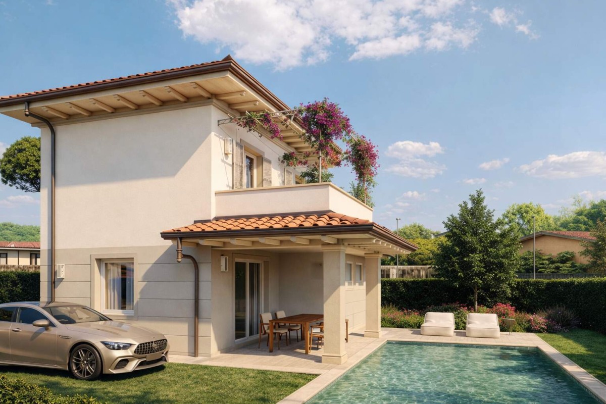 casa indipendente con giardino su quattro lati, disposta su due livelli. Piano
