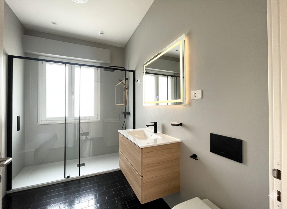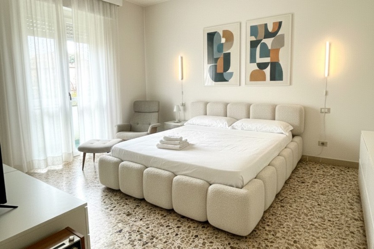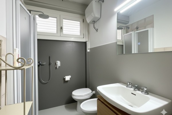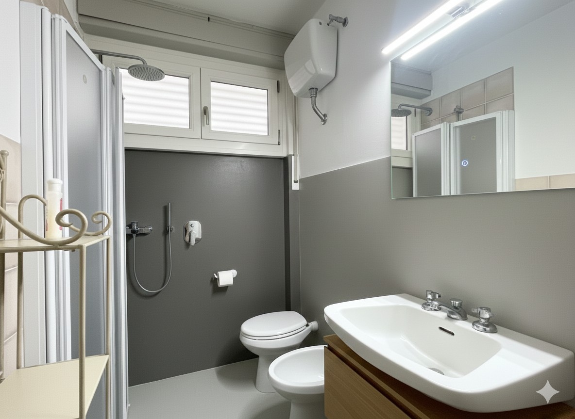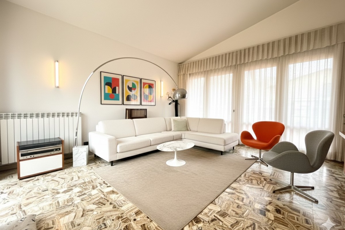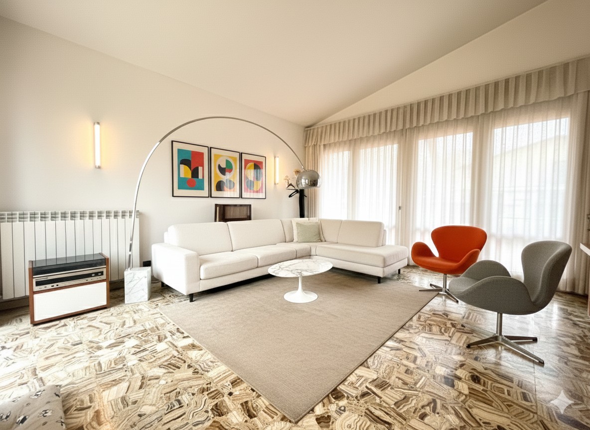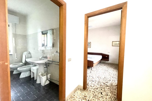 N.B. Le immagini di questo immobile presenti sul sito e sui portali immobiliari hanno esclusivamente scopo dimostrativo. Esse mostrano l’edificio con le facciate completamente bianche, comprese le parti attualmente rivestite in mattoncini. Gli interni sono proposti con un arredamento diverso rispetto a quello esistente; i pavimenti originali sono mantenuti, ad eccezione della sala da pranzo e della cucin dove è rappresentata l’applicazione di una resina. Anche i rivestimenti dei bagni sono illustrati con un’ipotesi di finitura in resina.Tali immagini hanno l’unico obiettivo di mostrare come, con interventi minimi, l’immobile possa acquisire un aspetto più moderno e gradevole.