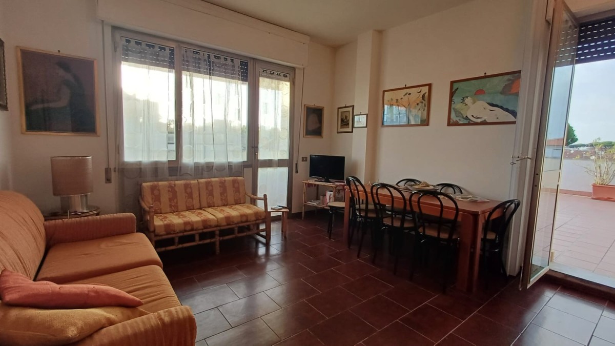 VIAREGGIO – Quartiere Marco Polo A soli 1,1 km dal mare, in una delle zone più richieste e ben servite della città, proponiamo in vendita un grazioso appartamento posto al terzo ed ultimo piano di una palazzina signorile dotata di ascensore. L’immobile gode di una posizione tranquilla e riservata, pur rimanendo a pochi minuti a piedi da tutti i principali servizi, negozi, supermercati, bar e ristoranti, oltre che dal rinomato lungomare di Viareggio. L’appartamento si presenta in ottime condizioni generali, luminoso e ben distribuito negli spazi. Si compone di ingresso, cucinotto separato, ampia zona giorno/pranzo con accesso diretto all’elemento più distintivo della casa: una splendida terrazza di circa 50 mq, ideale per pranzi e cene all’aperto, momenti di relax o per creare un piccolo giardino pensile con vista aperta sui tetti della città. La zona notte comprende una camera matrimoniale. Completano la proprietà un posto auto assegnato all’interno del parcheggio condominiale e un piccolo ripostiglio di proprietà situato nella cantina condominiale, perfetto per biciclette o attrezzature da mare. La superficie interna è di 47 mq, mentre la superficie commerciale complessiva è di 82,7 mq, considerando anche le superfici esterne ponderate. L’esposizione e il piano alto rendono l’appartamento particolarmente luminoso e arioso durante tutto l’arco della giornata. Ideale come abitazione principale per coppie, come casa vacanze o come investimento da mettere a reddito data la forte richiesta di immobili nella zona Marco Polo, a pochi minuti dalle spiagge e dalla pineta di Ponente. Richiesta: € 280.000,00 (Prezzo al mq: € 3.385,00) RIF. 712